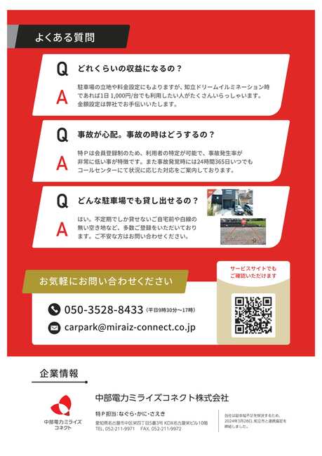 | 駐車場 | ※ 駐車場は特Pをご利用ください。 |
